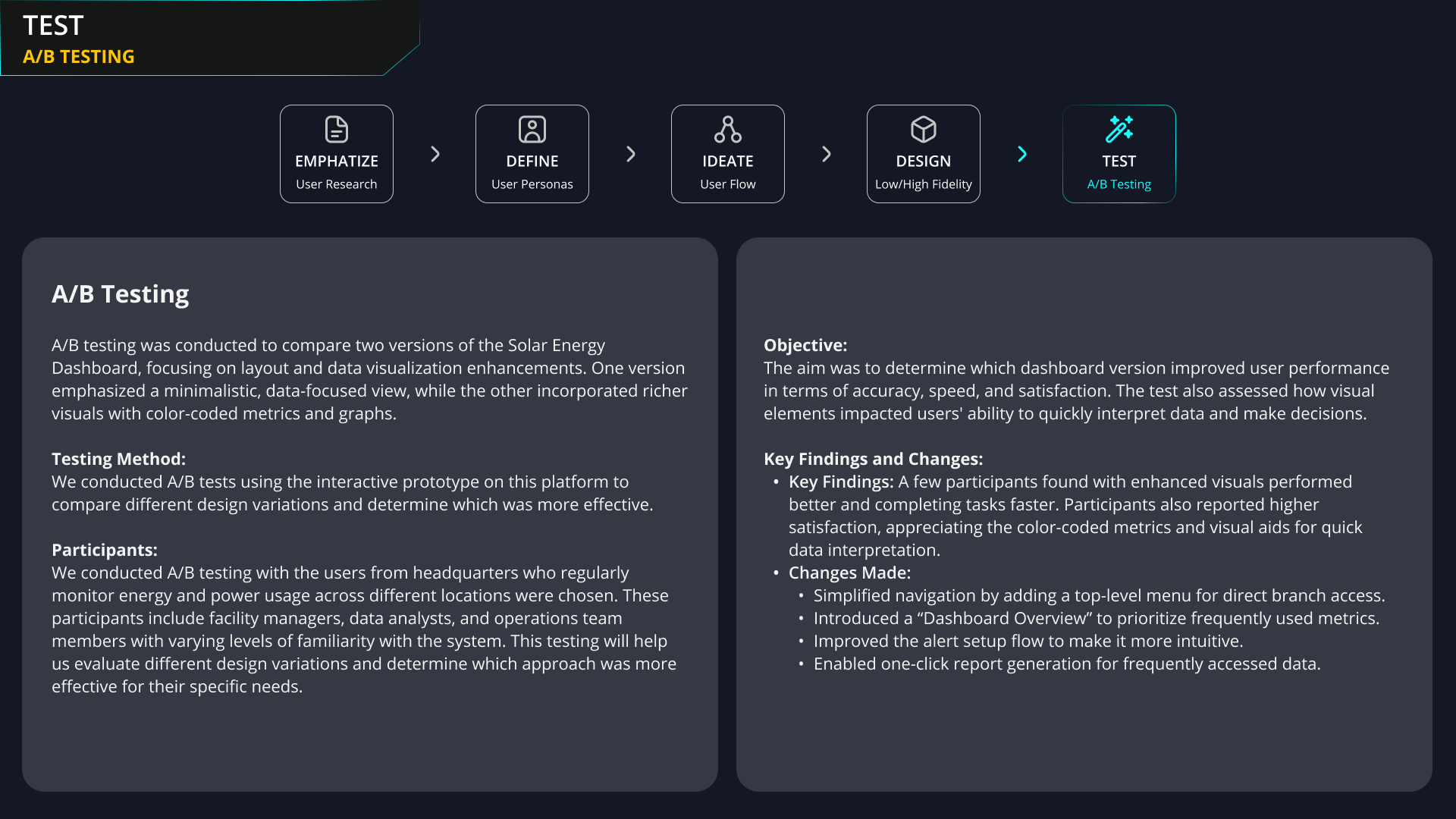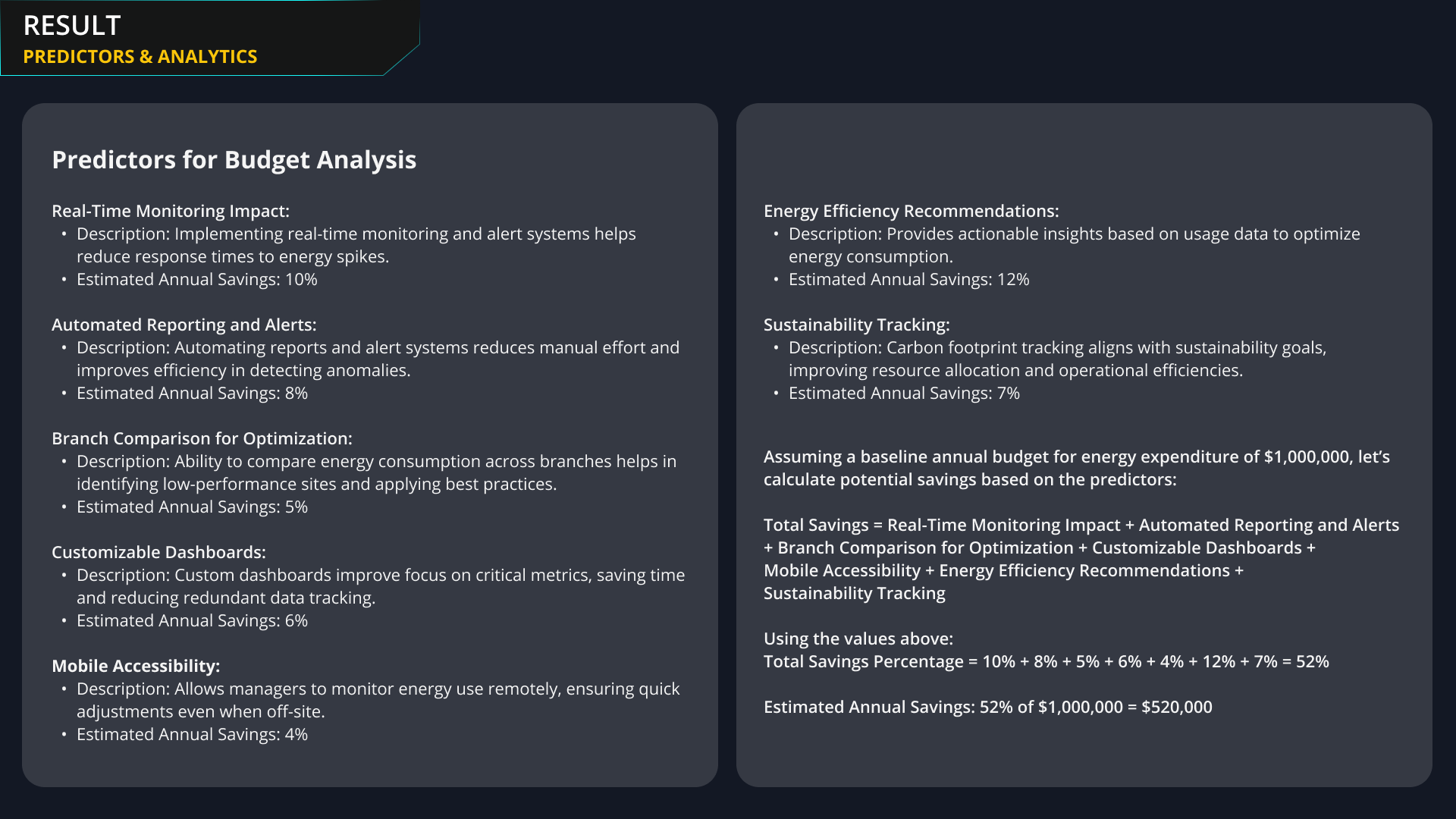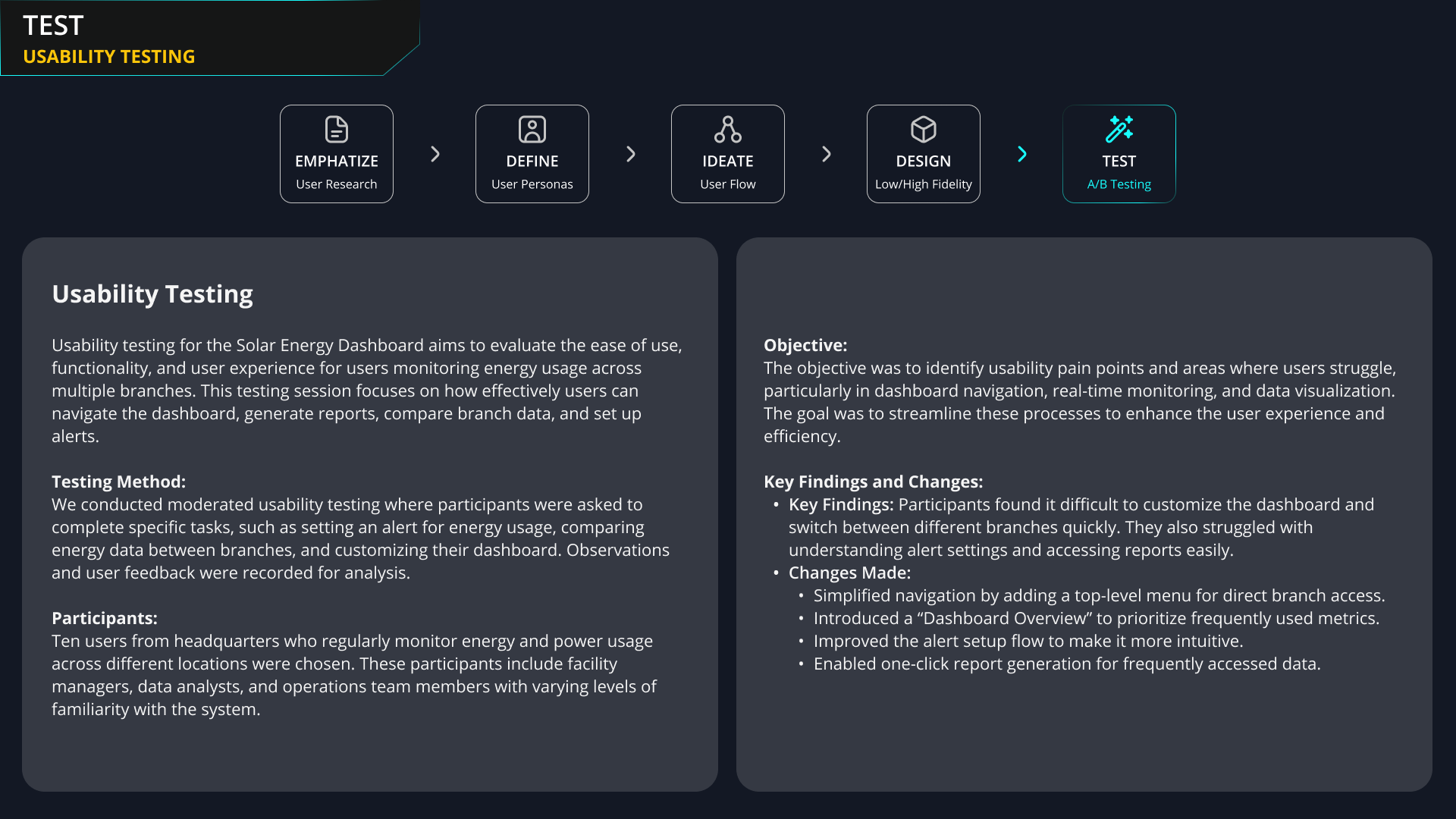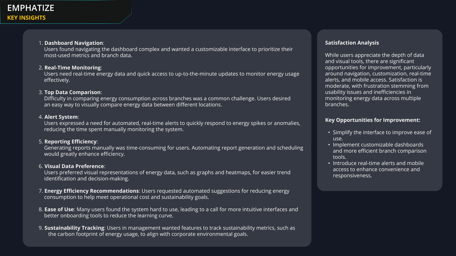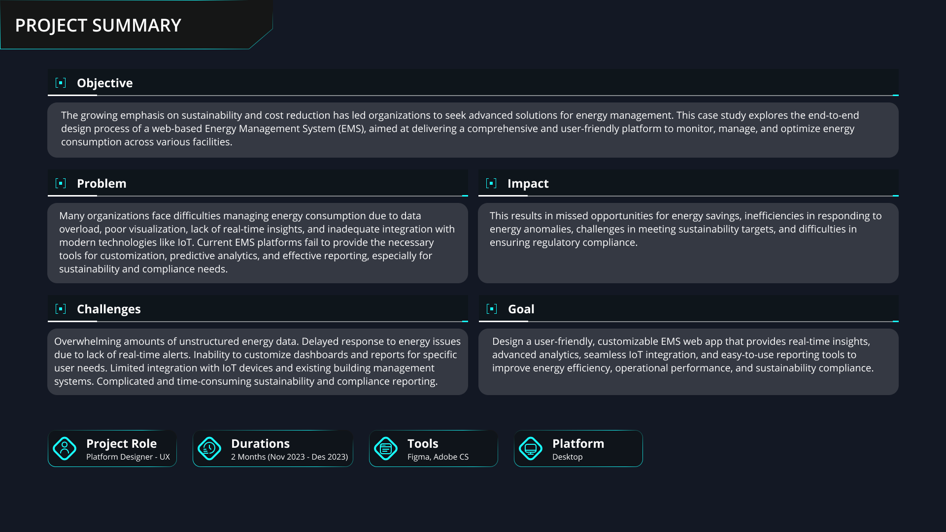 The redesigned Energy Management System (EMS) Dashboard for Alfa Energy successfully streamlined the monitoring and control of energy usage across multiple Southeast Asian operations. By integrating real-time data visualization, intelligent alerts, and user-friendly interaction flows, the system enabled a 15% average reduction in energy consumption. Notably, sites in the plantation and palm oil sectors achieved 10–20% efficiency improvements through optimized load management and reduced energy wastage, contributing to significant operational cost savings and sustainability goals.
